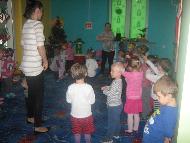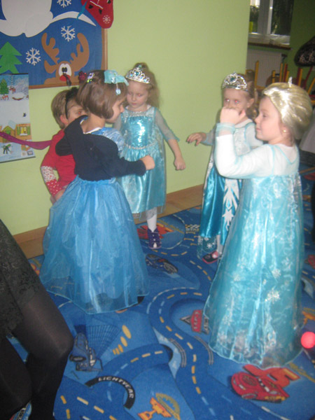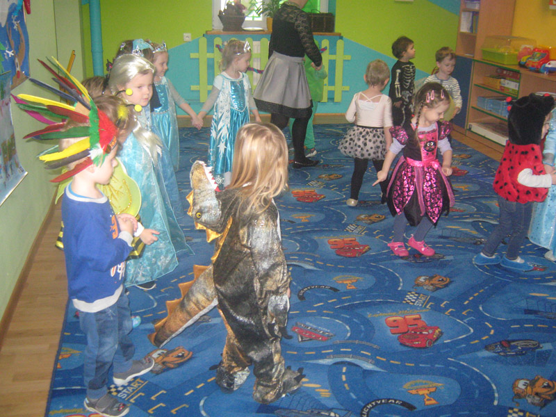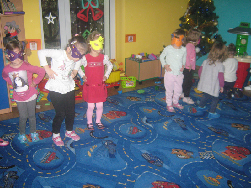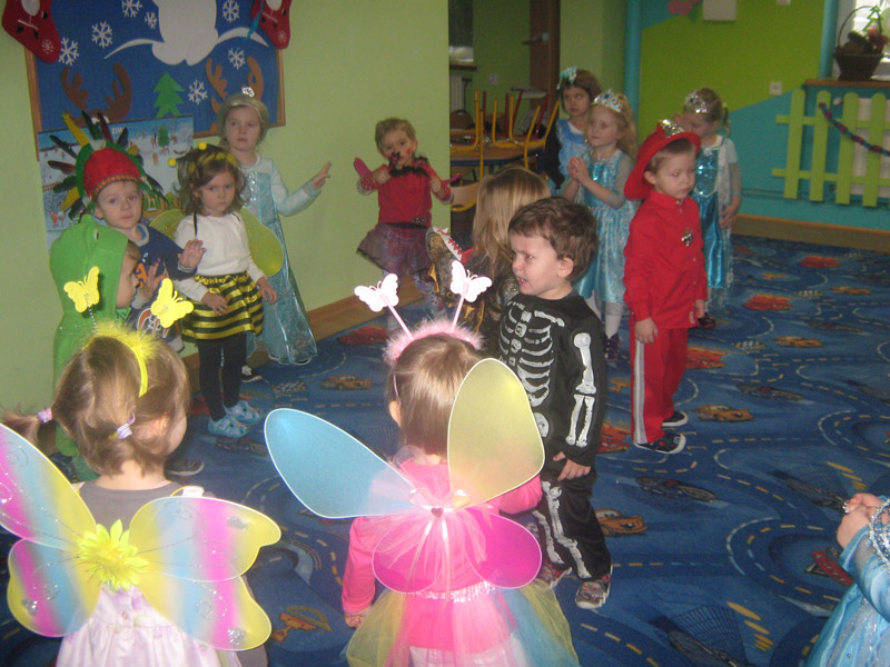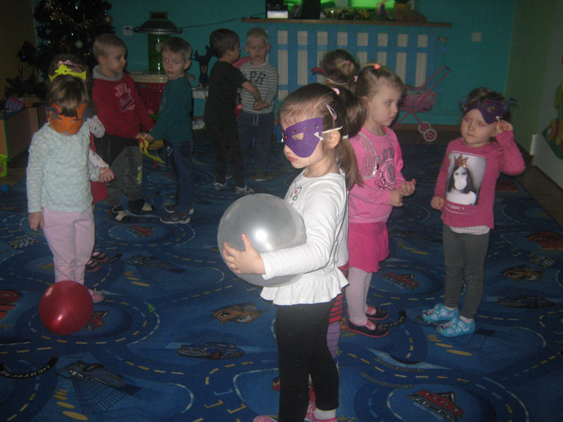 Świetną ku temu okazją jest, niewątpliwie, bal choinkowy, który w naszym przedszkolu odbył się 12 stycznia. Z wielką niecierpliwością czekały na niego szczególnie dzieci, które przy pomocy rodziców oraz ich ogromnej pomysłowości przygotowały ciekawe kostiumy karnawałowe. Swoje stroje maluchy mogły zaprezentować podczas specjalnie zorganizowanego „Pokazu mody choinkowej”. Wśród radosnych małych modelek powodzeniem cieszył się szczególnie kostium Elzy bohaterki bajki „Kraina lodu”, ale nie zabrakło też odważnego strażaka, żabki, motylka, dinozaura, wróżki, biedronki, pszczółki itp. Każde dziecko miało możliwość pozowania do indywidualnego zdjęcia. Wystrój sali natomiast wprowadzał w radosny nastrój wszystkich uczestników balu oraz zachęcał do wesołej zabawy. Miłą niespodzianką dla dzieci okazały się kolorowe balony oraz zwisające serpentyny. Maluchy świetnie bawiły się w rytmach wesołej muzyki. Chętnie też brały udział w zorganizowanych przez wychowawców zabawach. Na sali podczas pląsów było bardzo kolorowo, a uśmiech na twarzach dzieci nie znikał mimo chwilowego zmęczenia. Dużym zaskoczeniem dla przedszkolaków była wizyta Mikołaja. Dzieciaki chętnie recytowały wiersze i śpiewały piosenki dla niezwykłego gościa. W nagrodę każde z nich otrzymało prezent. Kiedy czas zabawy dobiegł końca dzieci z żalem opuszczały „salę balową”.