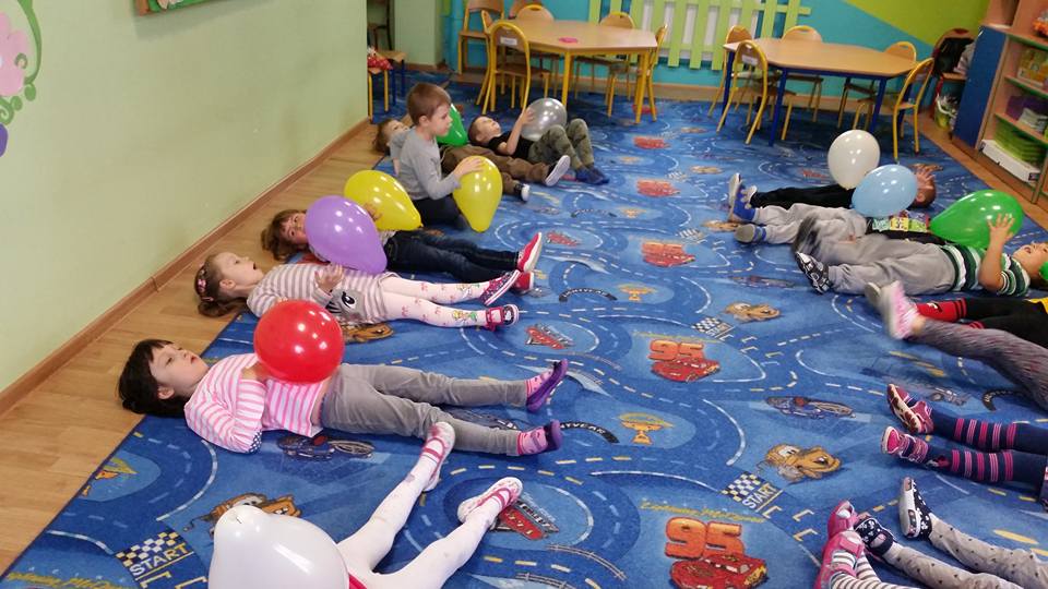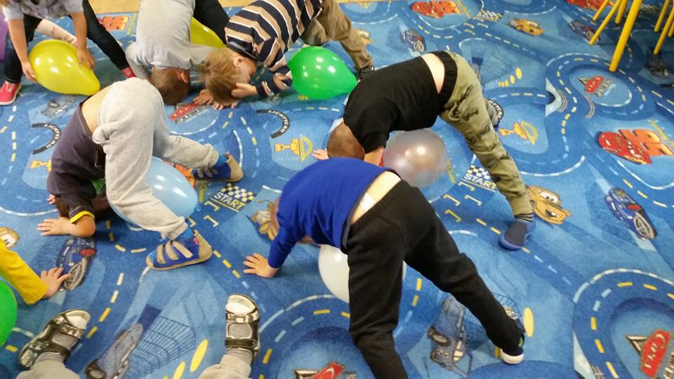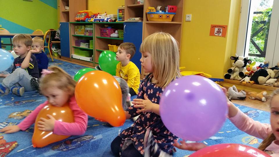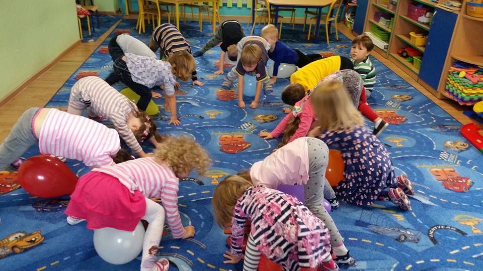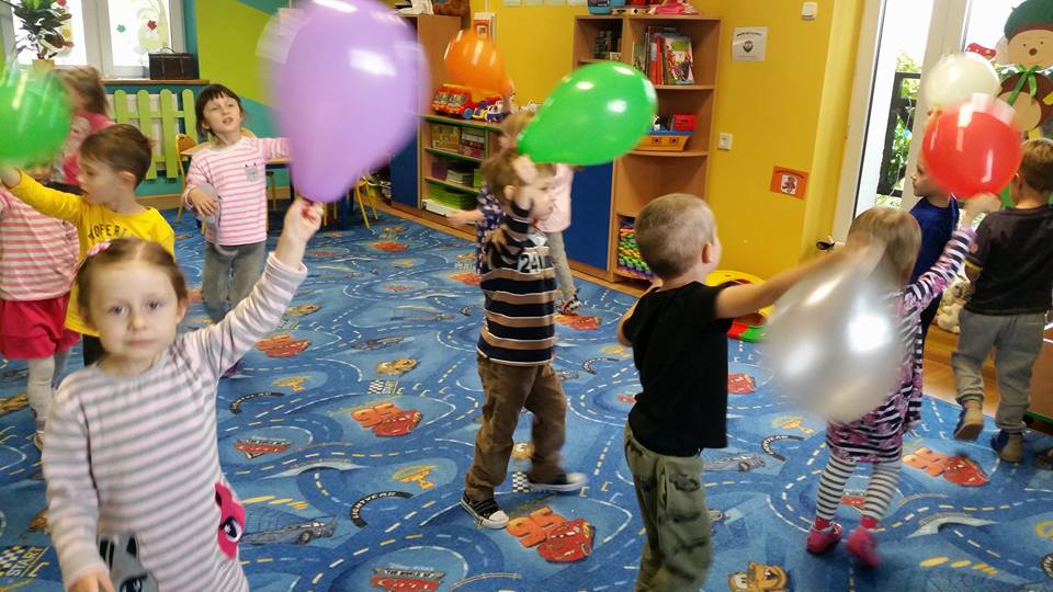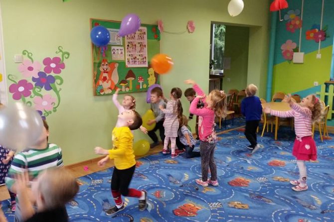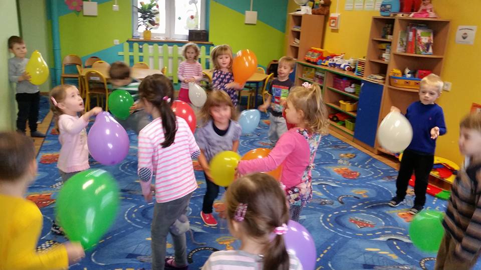 Maluchy od samego rana śpiewały piosenki o przedszkolakach m.in. „Dzień przedszkolaka”, „Jestem sobie przedszkolaczek” oraz „Mały przedszkolak”. Następnie dzieci zostały zaproszone do wspólnej zabawy. Rzucały piłeczką do celu, chodziły z woreczkiem na głowie, uczestniczyły w zabawach z wykorzystaniem chusty animacyjnej oraz zmagały się z balonami, które na końcu ozdobiły, zgodnie z własnymi pomysłami.