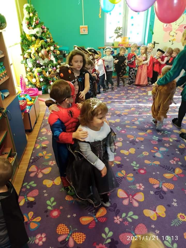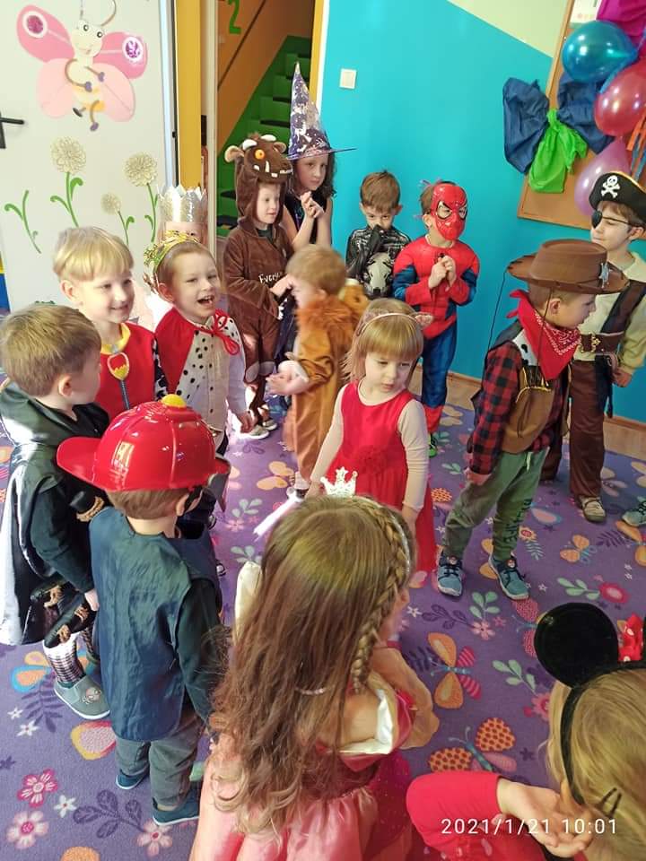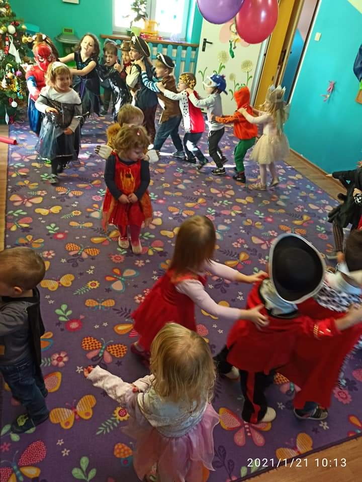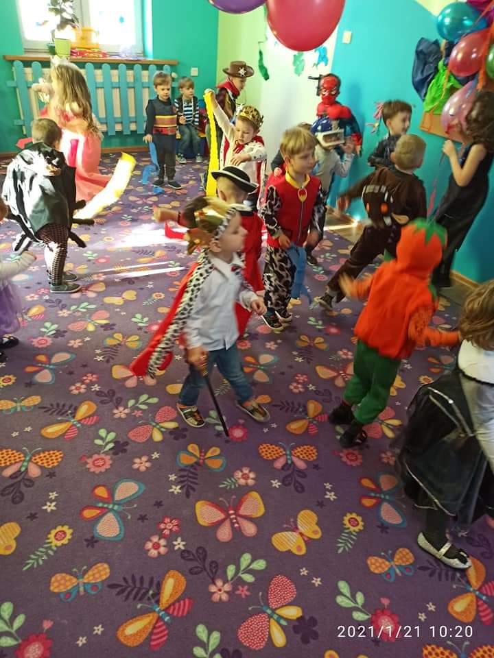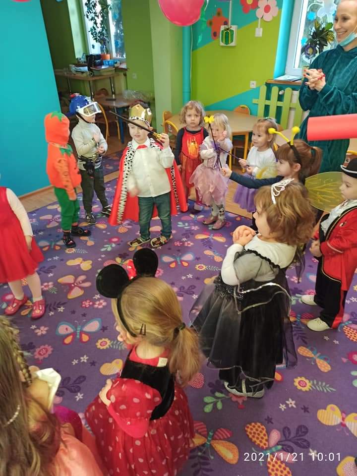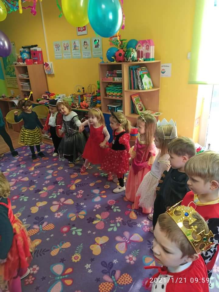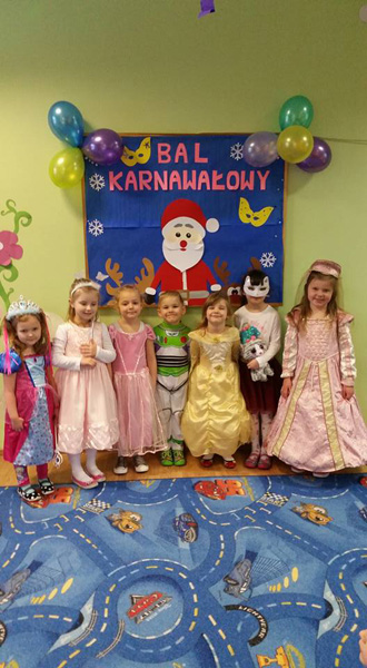 W piątek 19 stycznia odbył się w naszym przedszkolu bal karnawałowy. Tego dnia już od rana w przedszkolu pojawiały się kolorowe postacie. Dzieci przebrane były za bohaterów znanych bajek, w salach przedszkolnych można było spotkać, królewny, wróżki, rycerzy, strażaka, smoka … nie sposób zliczyć i wymienić tych wszystkich postaci. Rozpoznać dzieci było bardzo trudno.