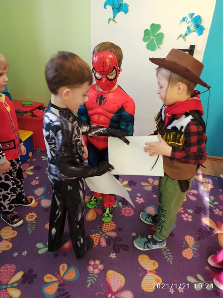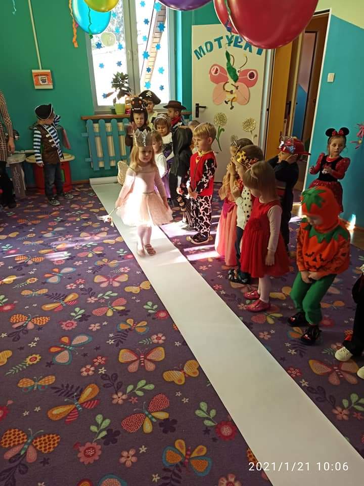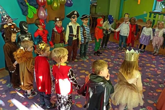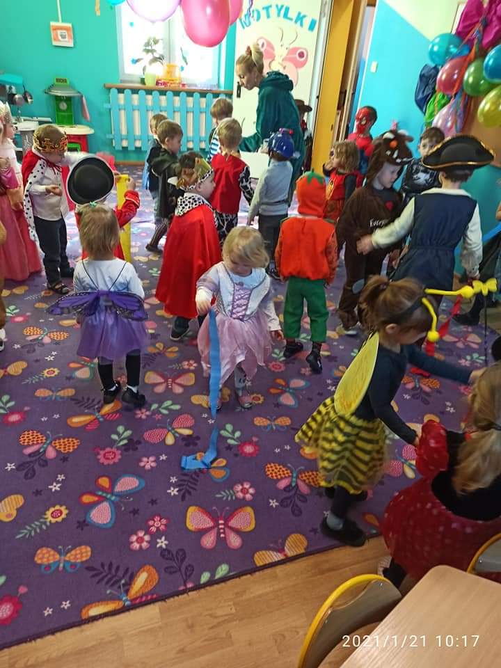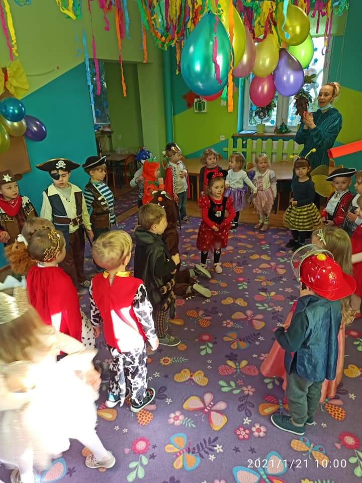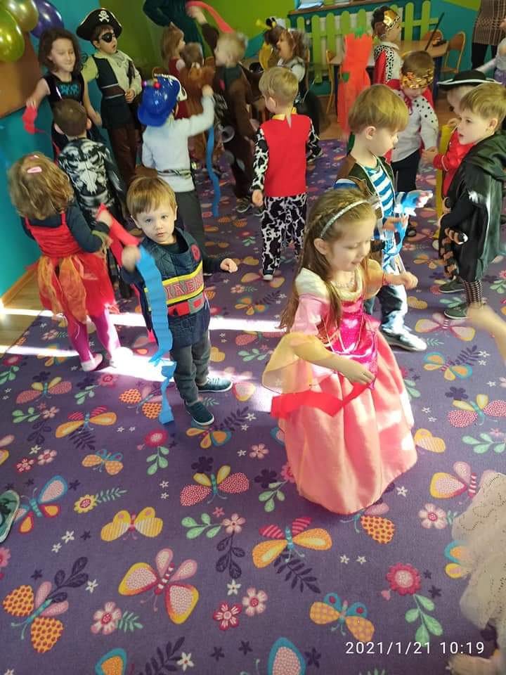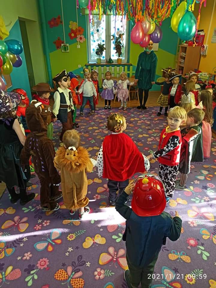 W piątek 19 stycznia odbył się w naszym przedszkolu bal karnawałowy. Tego dnia już od rana w przedszkolu pojawiały się kolorowe postacie. Dzieci przebrane były za bohaterów znanych bajek, w salach przedszkolnych można było spotkać, królewny, wróżki, rycerzy, strażaka, smoka … nie sposób zliczyć i wymienić tych wszystkich postaci. Rozpoznać dzieci było bardzo trudno.