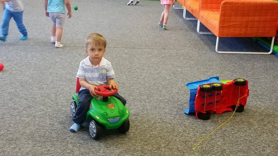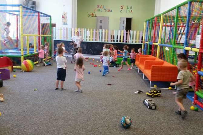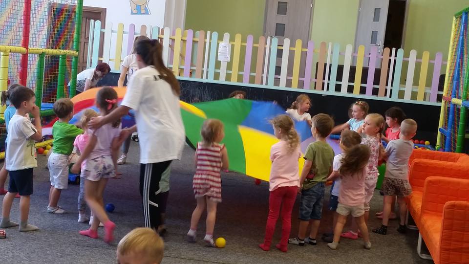 Na miejscu przywitała nas pani animator, która poinformowała dzieci o umowach i zasadach jakie panują podczas pobytu w sali zabaw. Następnie przedszkolaki udały się do szatni gdzie po zdjęciu wierzchniej odzieży i obuwia ruszyły do zabawek i atrakcji, które na nie czekały. Niezwykłą frajdą okazała się ogromna konstrukcja składająca się z labiryntu rur, przejść, zjeżdżalni i basenów z piłeczkami. Dzieciaki z wielką chęcią znajdowały sobie zajęcie korzystając także z mini pojazdów, kącików tematycznych i trampolin. Atrakcją były również zajęcia z paniami animatorkami: zabawy z chustą animacyjną, tańce oraz nauka skręcania balonów. Każdy, kto poczuł zmęczenie, mógł skorzystać z zacisznego kącika malucha, w którym można było odpocząć i nabrać sił przy wspólnym stole z owocami i soczkami.