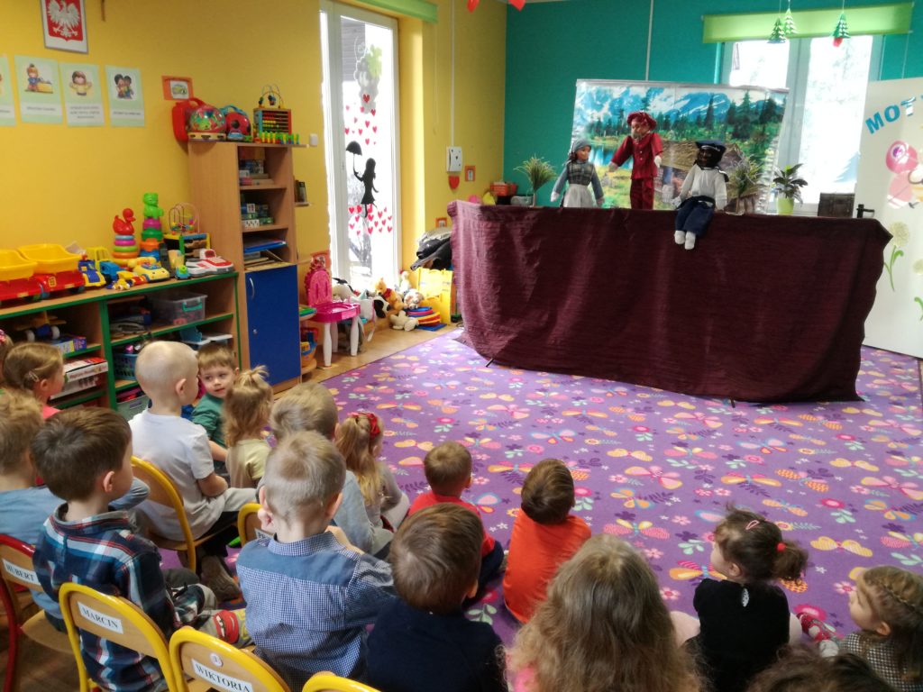 9 lutego 2019 do Naszego Przedszkola zawitał Teatrzyk z fantastycznym przedstawieniem „O rybaku i złotej rybce”, która spełniała marzenia. Dzieci z przyjemnością i ogromną uwagą oglądały przygody rybaka. Po zakończonym teatrzyku Dzieci miały okazję wziąć udział w sesji zdjęciowej, która jeszcze bardziej wprawiła wszystkich w świetny nastrój.