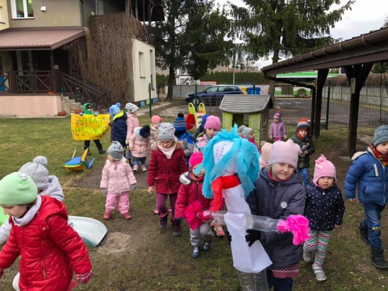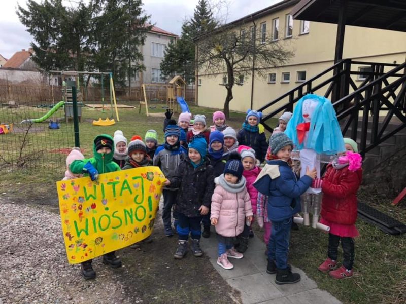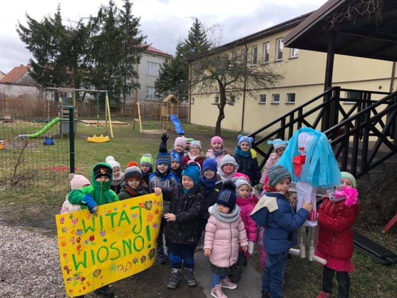 21 marca pożegnaliśmy oficjalnie zimę! Marzanna „odleciała” razem z zimnym i nieprzyjemnym wiatrem i dzięki temu sprowadziła do nas słońce i piękną pogodę. Dzieci wykonały kolorowy plakat na uroczyste powitanie nowej pory roku – Wiosny. Jesteśmy pewni, że głośno śpiewane piosenki usłyszała Pani Wiosna i nie pozwoli już wrócić zimie.