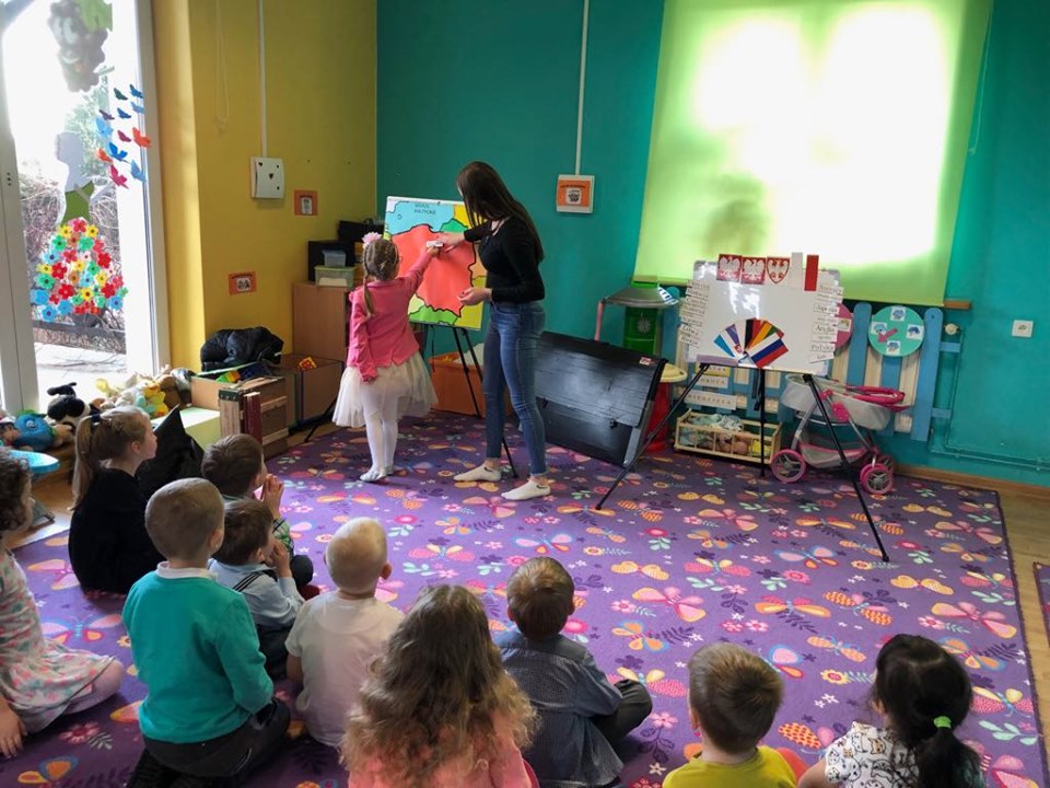 11 kwietnia odbyła się druga część programu edukacyjnego „Polska – moja Ojczyzna” zorganizowana przez agencję szkolno-przedszkolną LUPUS. Podczas zajęć dzieci dowiedziały się z jakimi państwami sąsiaduje Polska, a także powtórzyły wiadomości związane z symbolami narodowymi – utrwaliły wygląd godła i kolorów widniejących na fladze Polski. Dzieci aktywnie uczestniczyły w warsztatach i chętnie odpowiadały na zadawane im pytania. Po ciekawych zajęciach przedszkolaki miały również okazję zmierzyć mundury żołnierzy dywizjonu 303 i wziąć udział w sesji zdjęciowej.