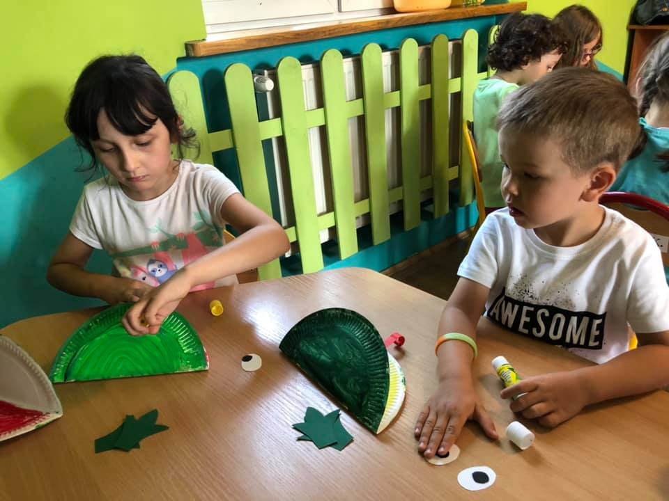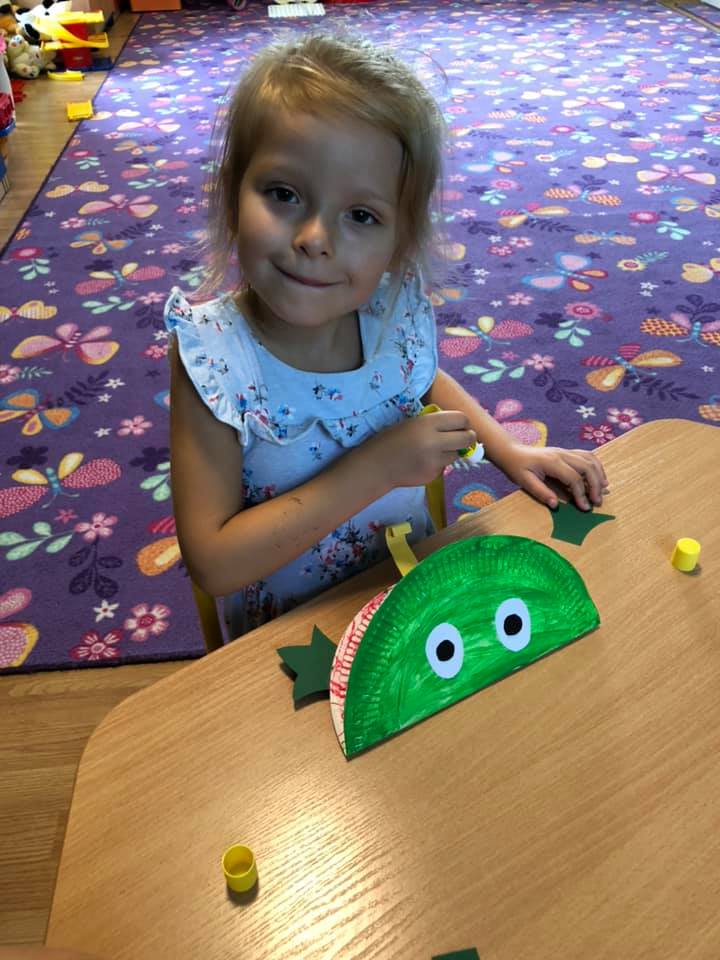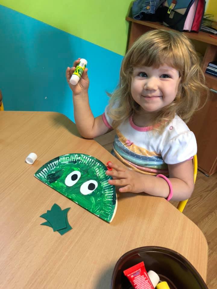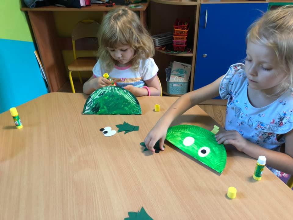 Mimo przerwy wakacyjnej, nasze przedszkolaki nie wychodzą z wprawy i ćwiczą rączki. Tematem tego tygodnia była łąka i jej mieszkańcy – dlatego też postanowiliśmy stworzyć żaby z papierowych talerzy. Wykonywanie pomysłowych prac nie tylko doskonali motorykę małą dzieci, ale także wzbogaca ich wyobraźnię.
