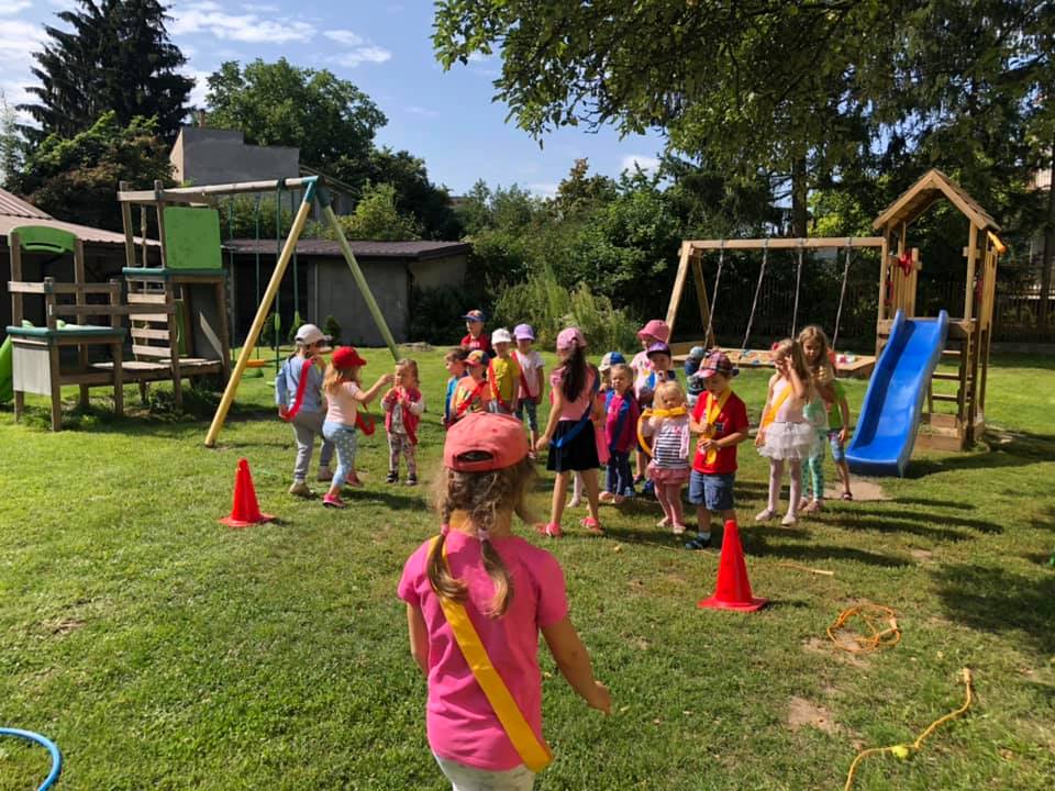 Sport to zdrowie, każdy przedszkolak tak powie! Każdego dnia korzystamy z uroków lata i wykorzystujemy każdy słoneczny dzień na organizowanie przeróżnych gier i zabaw na świeżym powietrzu. Nasz ogród przedszkolny nie tylko jest przeznaczony do zabawy, ale także ma dużo przestrzeni, którą wykorzystujemy do zawodów sportowych lub olimpijek. Dzięki temu dzieci zacieśniają więzy współpracując razem w grupie, uczą się dopingować, ale również znosić porażki. Różne konkurencje sportowe sprawiają, że dzieci od najmłodszych lat są zaznajamiane z zasadami fair play, które później mogą wykorzystać w życiu codziennym.